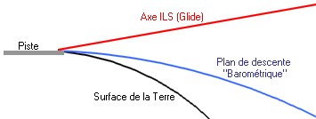 la surface de la terre alors qu'un plan ILS est un faisceau radio droit. Le