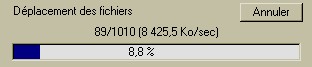 Lors de la copie des fichiers, une fenêtre apparaît vous fournissant la progression et la vitesse de transfert: