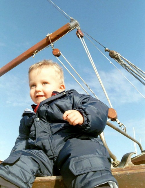 la Famille au complet, dans le carré du Ghost, Goélette de 15 mètres construite par lui-même.