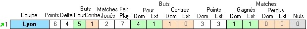 Le tableau sera alors trié selon: L'équipe ayant marqué le plus de buts (la meilleure attaque), l'équipe ayant encaissé le moins de buts (la meilleure défense) l'équipe ayant reçu le moins de cartons (le meilleur Fair-Play), La plus grande différence de buts marqués/encaissés (Goal Average), le plus de matches gagnés, le plus de matches nuls ou le moins de matches perdus.