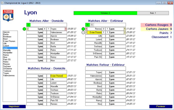 Ce tableau donnera les statistiques de chaque équipe pour les matches Aller et Retour, à l'extérieur et à domicile. Sa proportion de nuls, défaites ou victoires. Le cumul de cartons, etc. |
