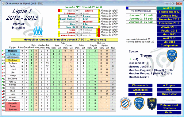 | Affiche une colonne de chifrres (de 1 à 38) pour appeler la journée de votre choix et revoir à ce jour quel était le classement. Le calcul ne prenant plus en compte les données postérieures à ce jour. | ||||
